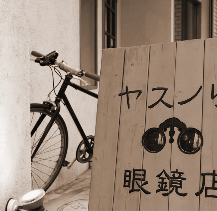 ヤスノリ眼鏡店では着物と最新のメガネデザインとの調和を目指しています。
